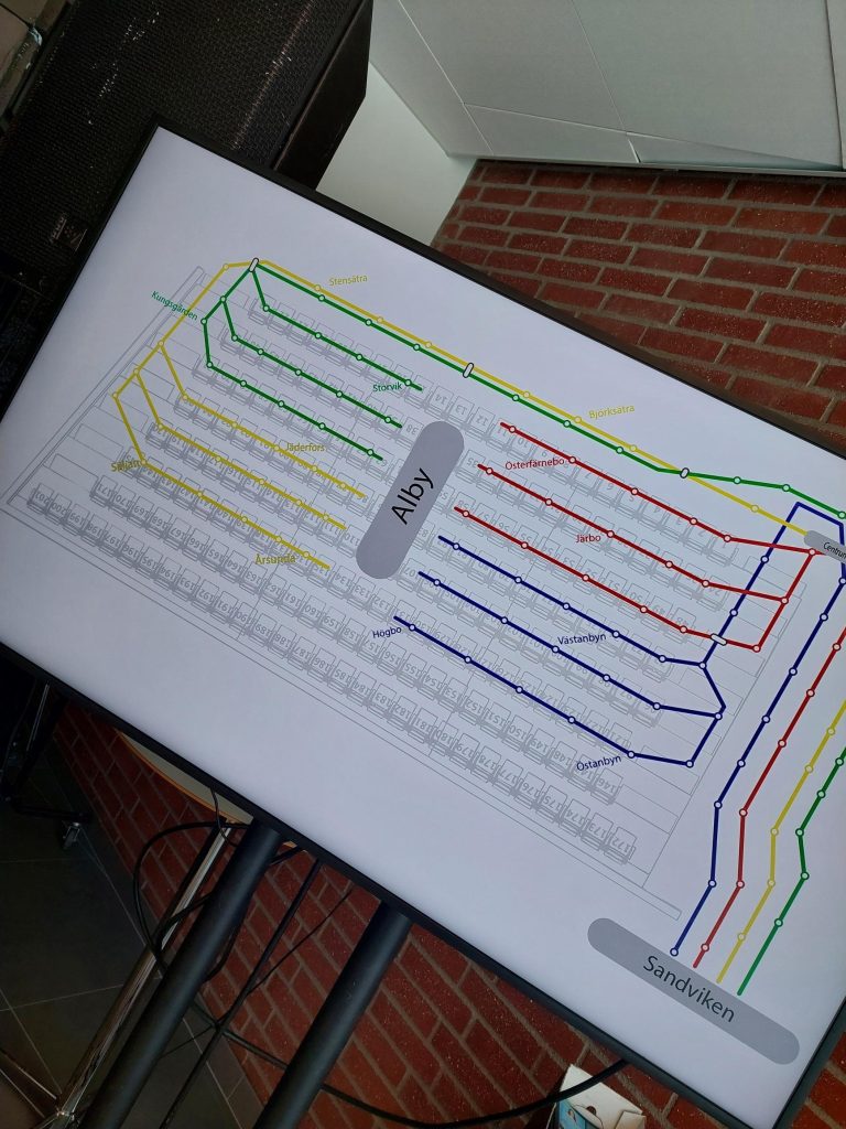 Elever som välkomnas, får hänga av sig, möter tydliga färger och vägvisare, ljud, ljus, musik… och plötsligt känns det som om Sandviken fått en helt egen tunnelbanestation där varje linje leder raka vägen till Alby.