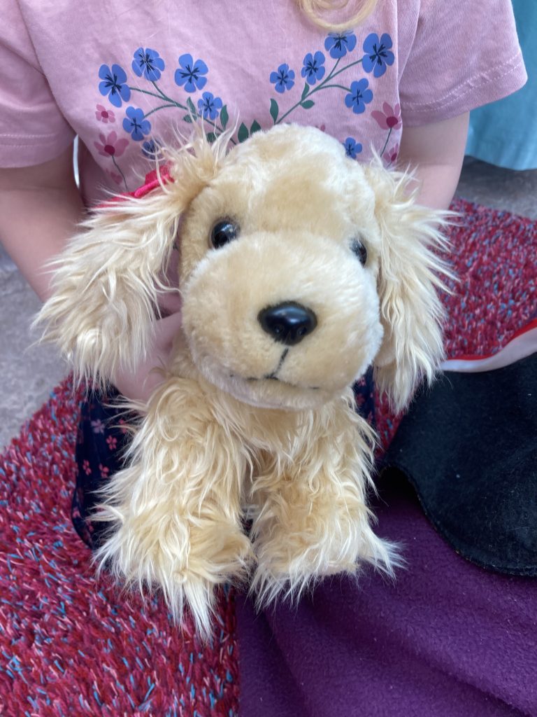 På fredagar möter vi många barn i vår öppna verksamhet Ordkarusellen. Barnen fick möta taxen Vira som ville att vi skulle läsa boken Hundhotellet tillsammans. Efter att vi läst boken berättade Vira att det också finns ett hundhotell på Trampolin. Vira visade en film där alla hundarna blev presenterade. Efter att vi sett filmen skuttade barnen glatt i väg för att leta efter hundhotellet och leka med hundarna.